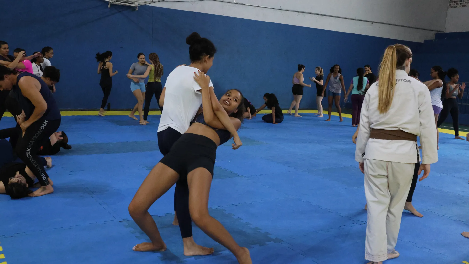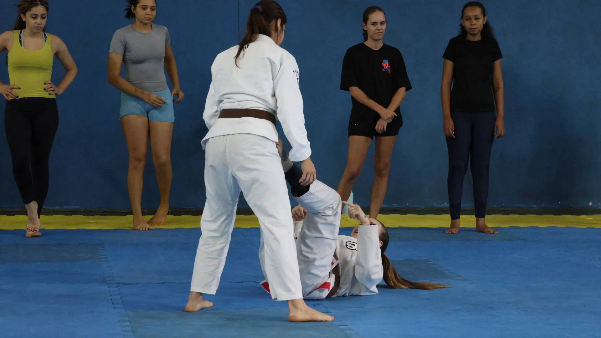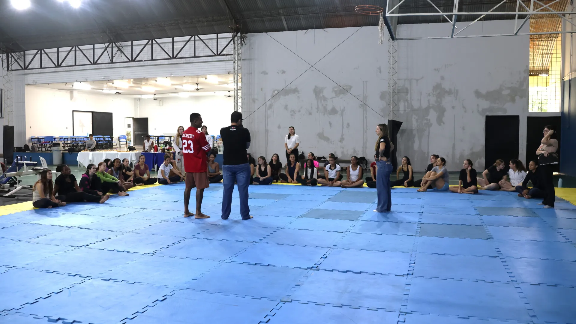 Entre os dias 10 e 14 de março, a Pró-Reitoria de Assistência Estudantil (Proae), por meio da Divisão de Esporte e Lazer (Diesu) e a Divisão de Saúde (Disau), realizaram nas quatro cidades sedes da Universidade Federal de Uberlândia (UFU) aulas de defesa pessoal para as estudantes. O encontro do último sábado, 14, no Campus Educação Física, encerrou as atividades da Proae para o mês da mulher com aula ministrada pelas professora de jiu-jitsu Amanda Araújo e Thaís Campos.