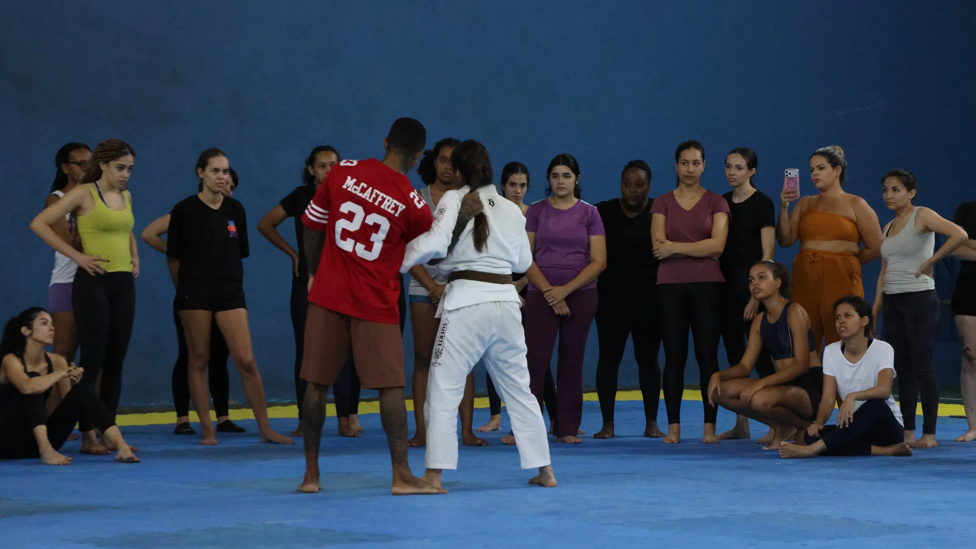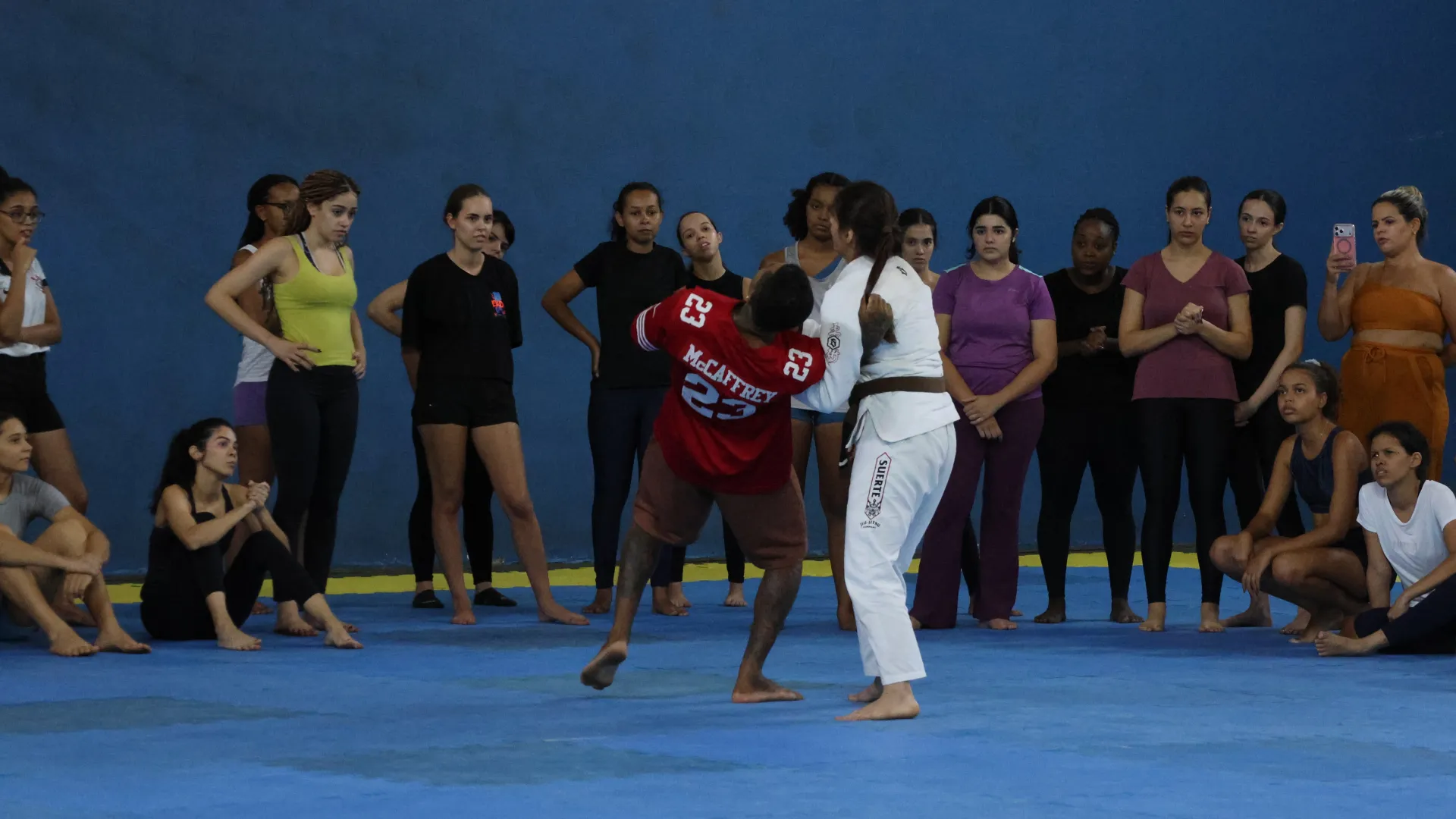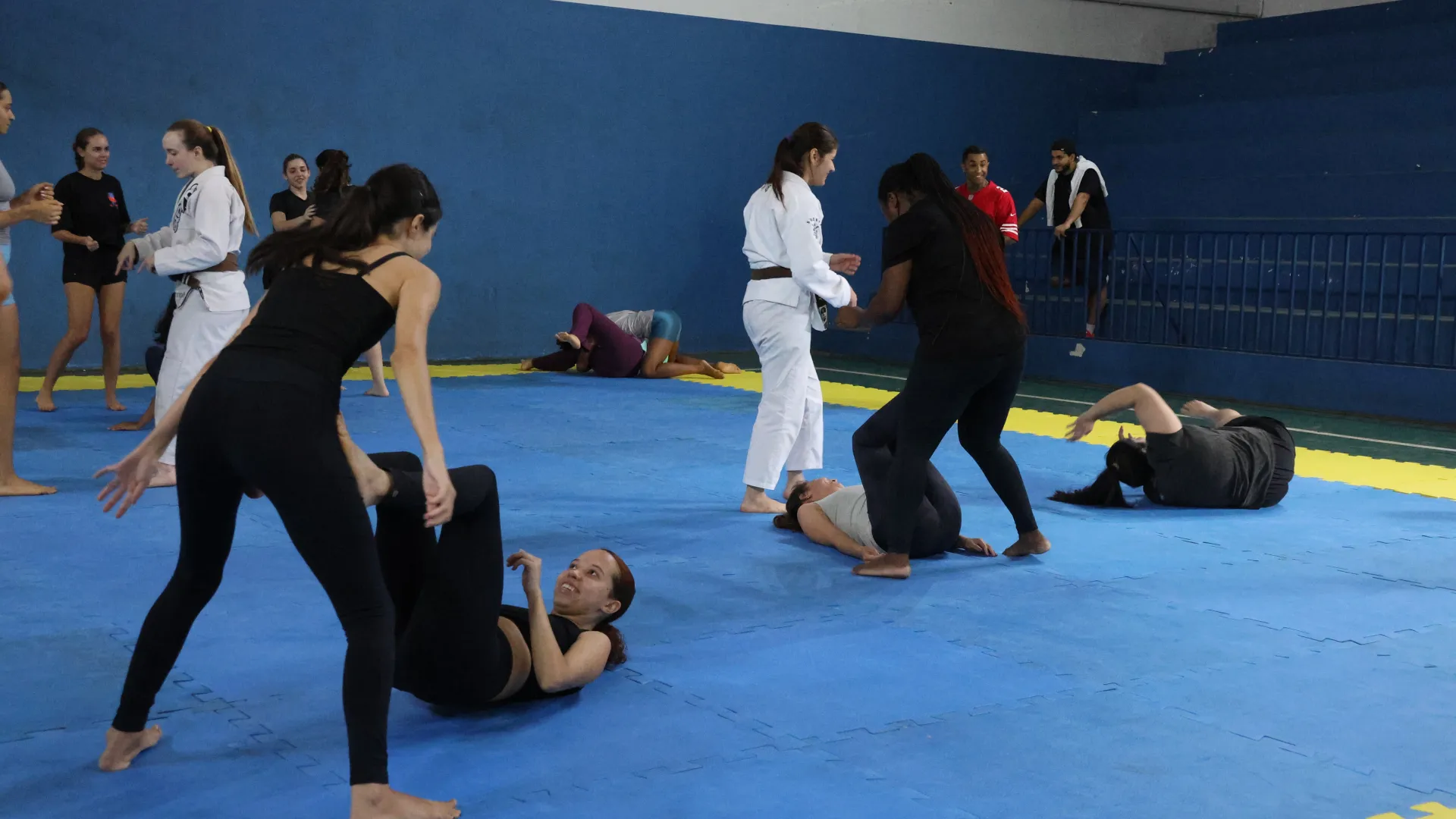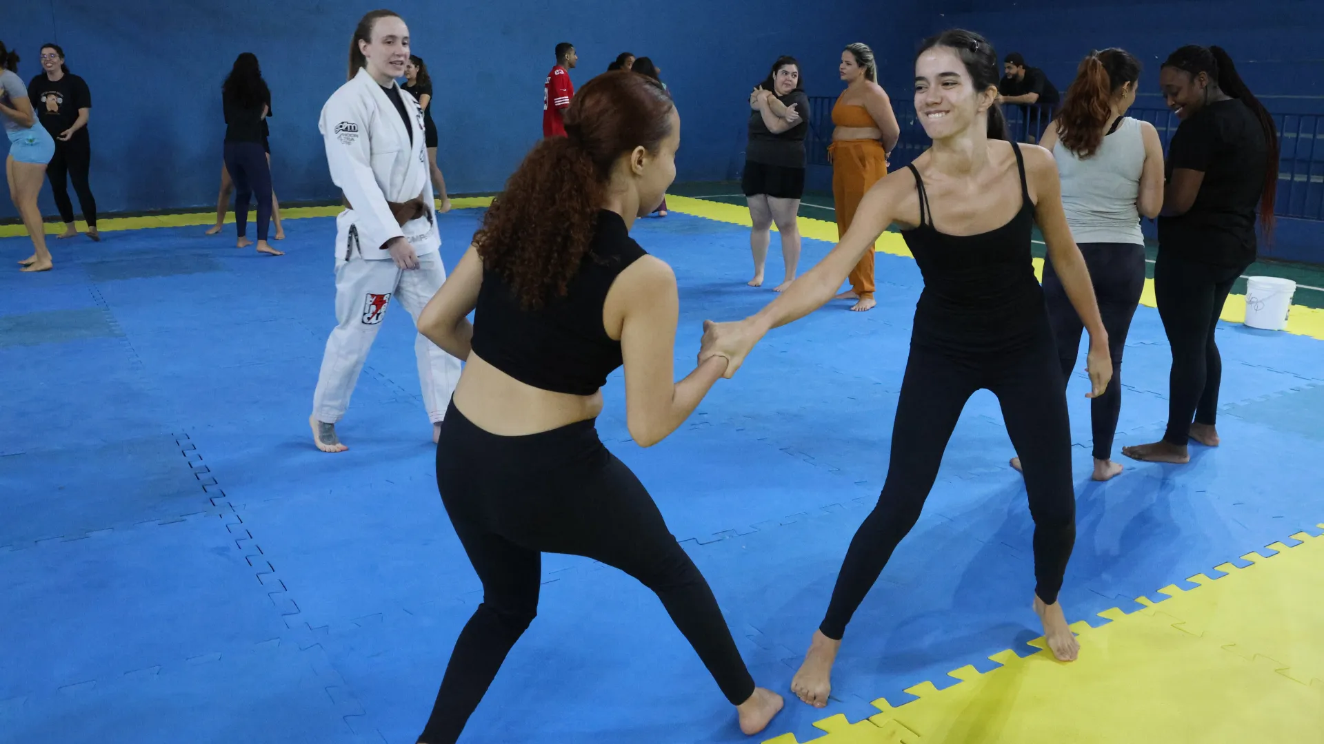 Entre os dias 10 e 14 de março, a Pró-Reitoria de Assistência Estudantil (Proae), por meio da Divisão de Esporte e Lazer (Diesu) e a Divisão de Saúde (Disau), realizaram nas quatro cidades sedes da Universidade Federal de Uberlândia (UFU) aulas de defesa pessoal para as estudantes. O encontro do último sábado, 14, no Campus Educação Física, encerrou as atividades da Proae para o mês da mulher com aula ministrada pelas professora de jiu-jitsu Amanda Araújo e Thaís Campos.