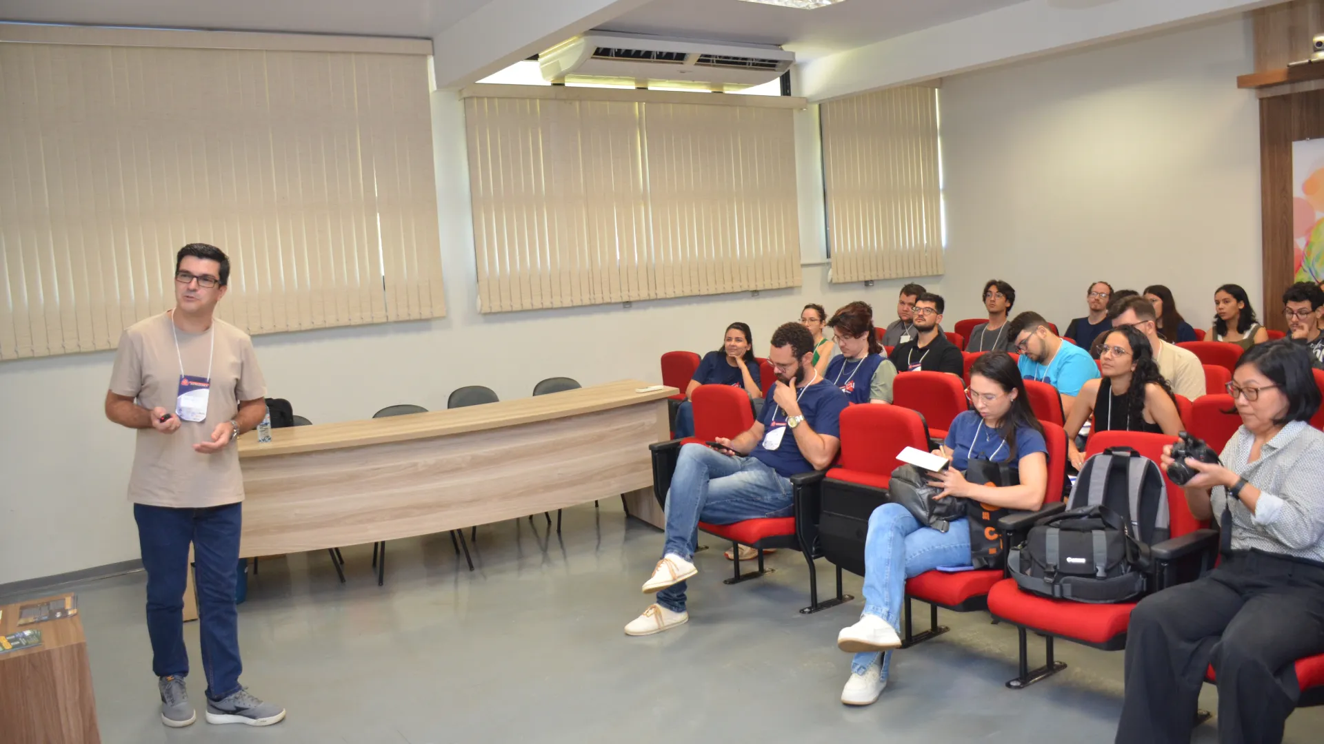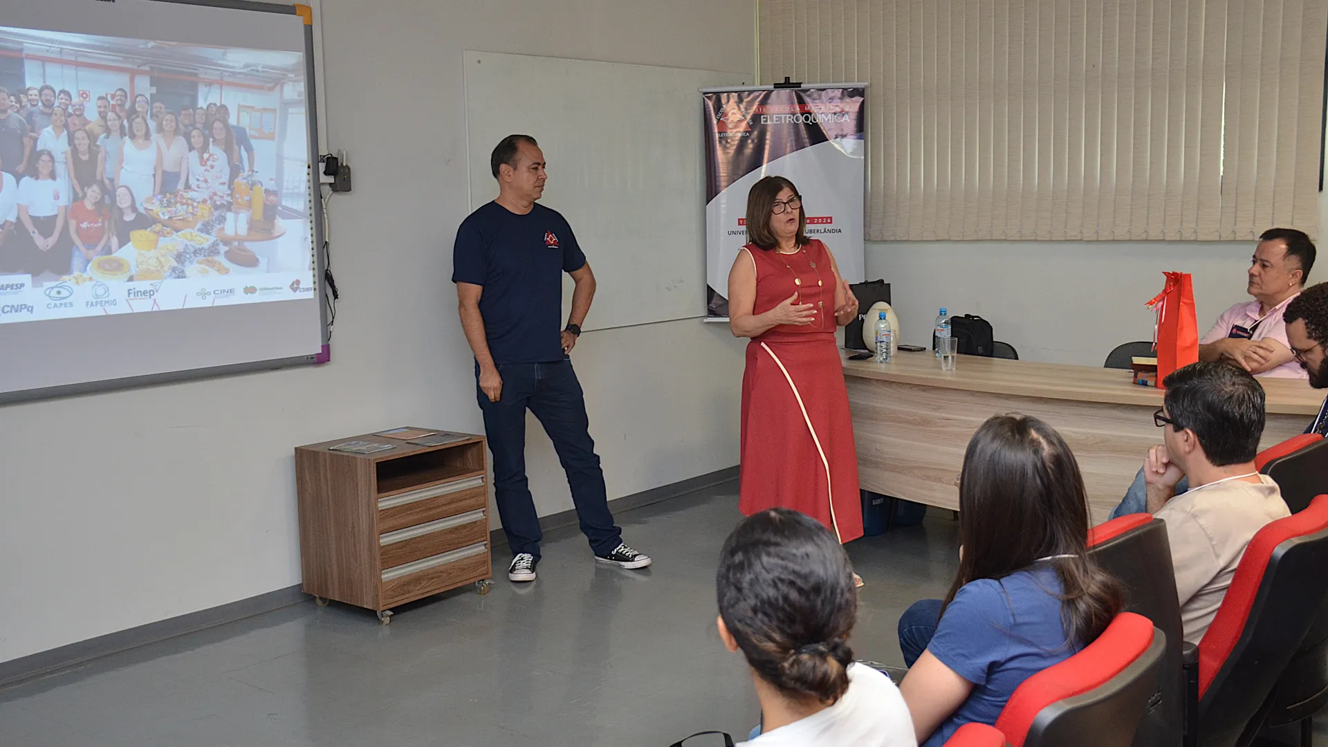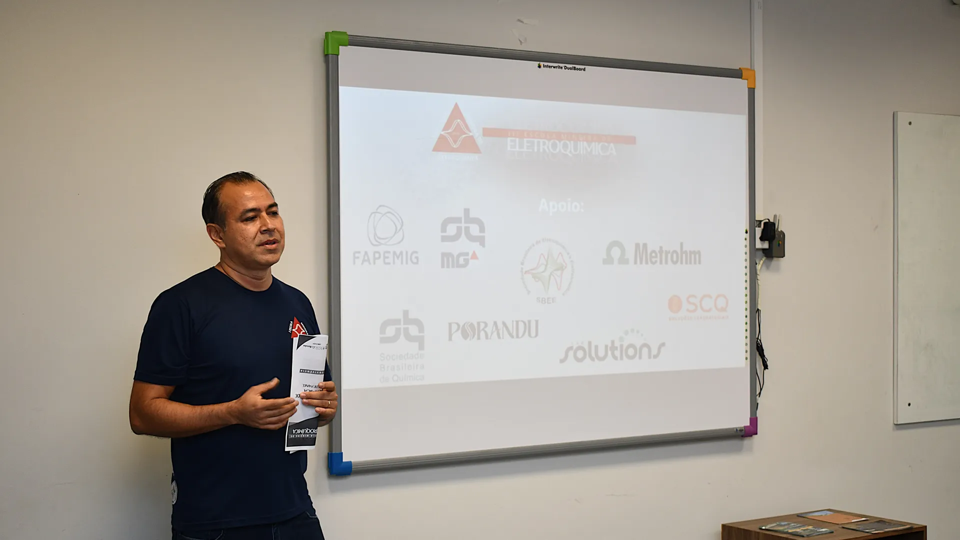 Ocorreu na última segunda-feira (13) no auditório do Bloco 5I a cerimônia de abertura da 3ª edição da Escola Mineira de Eletroquímica. O encontro conta com a presença de 25 estudantes de diferentes instituições de ensino. A programação engloba palestras, aulas teóricas, práticas e vivências em laboratório.